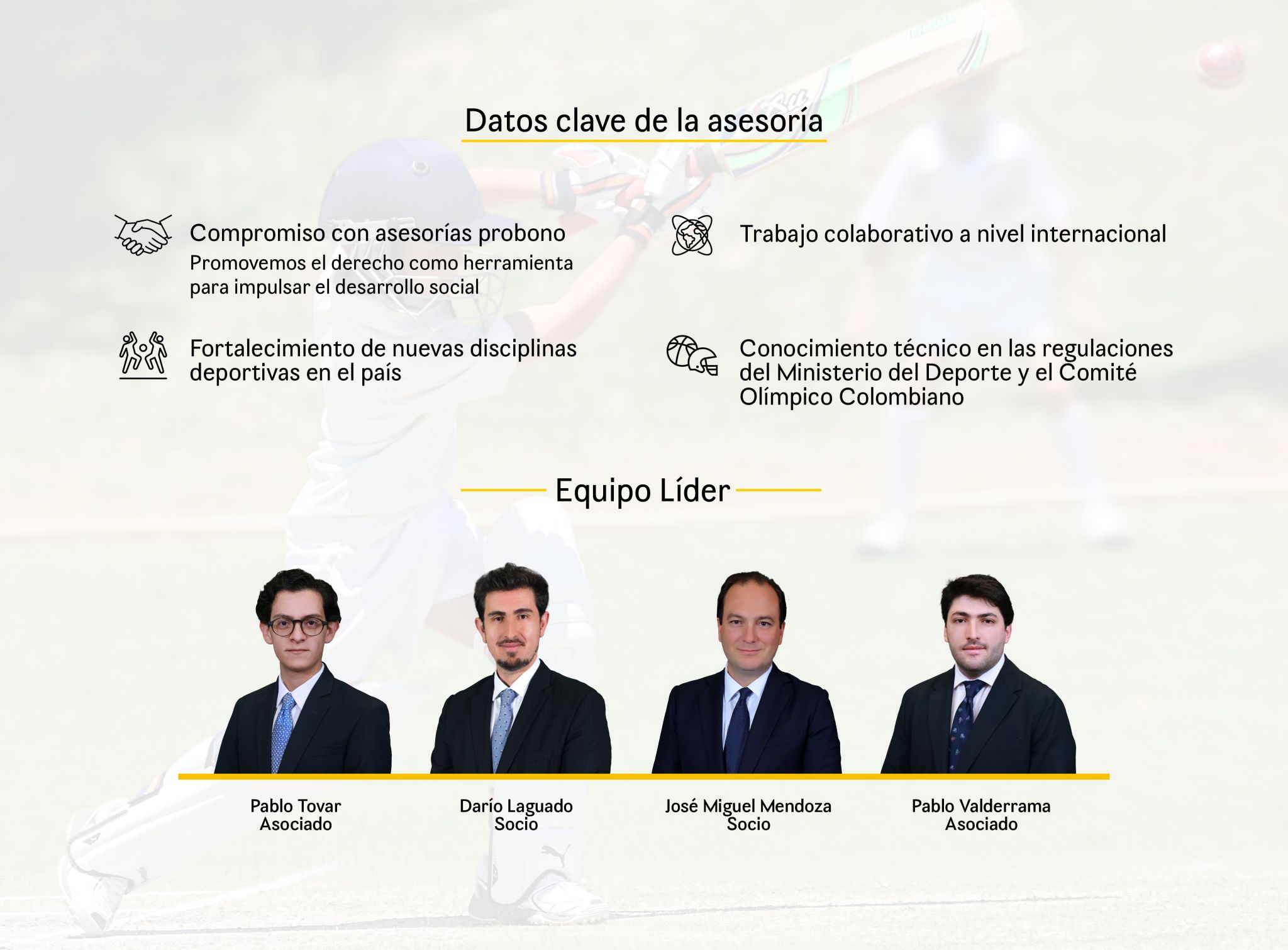 Los proyectos probono son una gran prioridad para nuestra firma y hoy nos alegra compartir el acompañamiento que hicimos al proceso de constitución de la Federación Colombiana de Cricket, una disciplina emergente que busca consolidarse en el país. En esta ocasión tuvimos la oportunidad de trabajar de la mano de Thomas Donegan, socio de A&O Shearman en Londres, junto con nuestros socios Dario Laguado y José Miguel Mendoza, y Pablo Valderrama Gómez y Pablo Tovar (asociados).